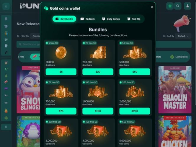 另一方面,掃蕩幣是一種高級貨幣,可以兌換真實獎勵,因此比金幣更有價值,但無法直接從網站上購買。您必須透過各種促銷活動來賺取掃蕩幣,例如迎新獎勵、抽獎、挑戰、推薦系統、每日獎勵、每週促銷、郵件請求、季節性活動和遊戲。購買金幣禮包時,掃蕩幣也會作為禮物。