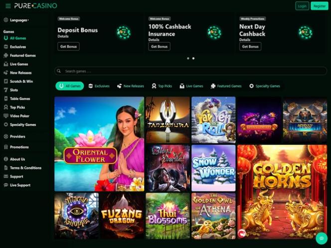 Pure Casino 提供由 Rival Gaming 開發的線上賭場遊戲。所有內容均安全公平,並擁有隨機數產生器憑證。