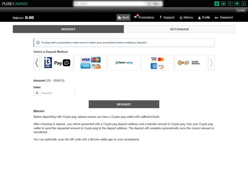 這是一家加密貨幣線上賭場,其收銀員提供即時比特幣存款選項。如果您不熟悉比特幣存款或加密貨幣,賭場會提供一份簡短的手冊,指導您如何為帳戶充值。