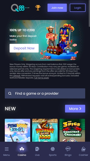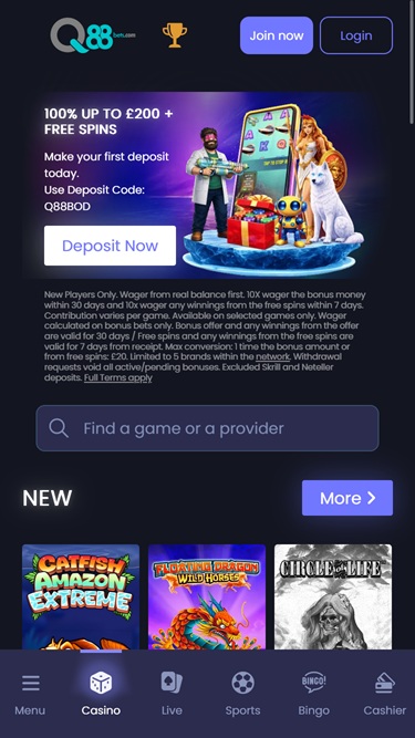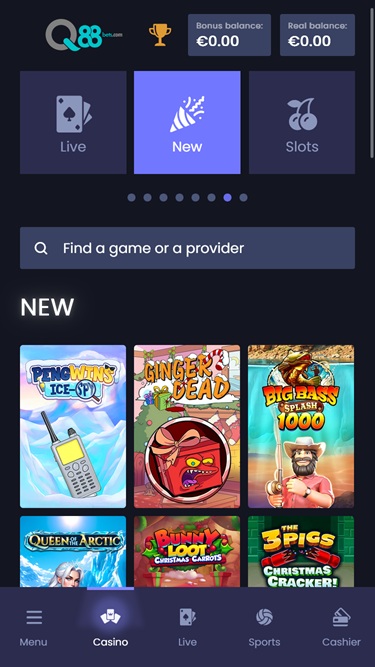 遊戲平台主要針對英國、加拿大、挪威、芬蘭和紐西蘭的玩家,其平台提供英語、法語、芬蘭語、日語和葡萄牙語版本。賭場介面簡潔易用,但畫面效果可以更逼真一些,因為 Q888Bets 與其他幾家熱門線上博弈品牌使用的是相同的平台。