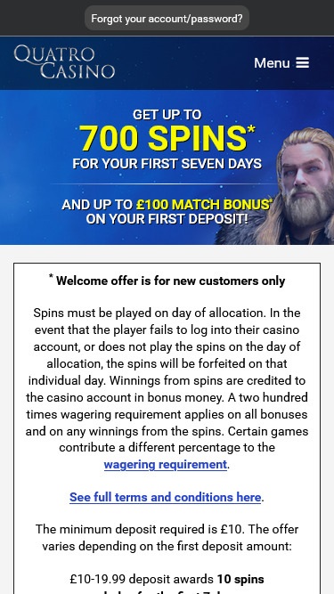 Quatro Casino 最初於 2009 年開業,但實際上在 2011 年初被 Casino Rewards Group 收購,該集團還擁有並經營超過 25 個其他品牌。 Quatro Casino 被賭客和業內人士普遍視為一家優秀的賭場,他們稱讚其龐大的遊戲庫、為新玩家提供的無風險免費遊戲優惠以及優秀的管理人員,從而提供了卓越的客戶服務。賭場資訊