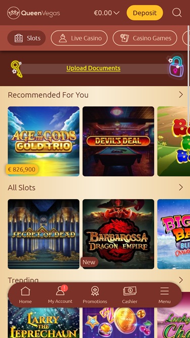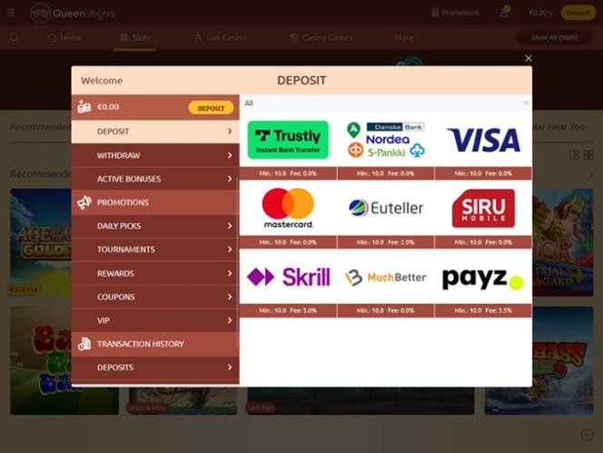 Queen Vegas Casino 由 Microgaming, Net Entertainment, Playtech, 1x2gaming, Barcrest, Big Time Gaming, ELK Studios, Evolution Gaming, EYECON, Habanero Systems, iSoftBet, lightningboxgames, Oryx, Play'n GO, Quickspin, Rabcat, Relax Gaming, Thunderkick, Yggdrasil, Wazdan, Realistic Games, Booming Games, Stakelogic, Pragmatic Play, Red Tiger Gaming, IGT, Skillzzgaming, Fantasma Games, SYNOT Games, Kalamba, Triple Edge Studios, Northern Lights Gaming, Stormcraft Studios, Switch Studios, Electric Elephant Games, Dreamtech Gaming, Bulletproof Games, All41 Studios, Gluck Games, Gameburger Studios, Pulse 8 Studios, Neon Valley Studios, Golden Rock Studios, Spearhead Studios, TrueLab Games, Shuffle Master, SpinPlay Games, GONG Gaming, Buck Stakes Entertainment, Games Global, Amusnet Interactive, 2by2 Gaming, Ash Gaming, Bally Technologies, Blueprint Gaming, Merkur Gaming, NextGen, NYX Interactive, Push Gaming, Skill on Net, WMS, Inspired Gaming, Cayetano, SG Interactive, Gamomat, Red7Mobile, Reel Time Gaming, MGA, Authentic Gaming, Bally Wulff, Iron Dog Studio, Old Skool Studios, Foxium, Just For The Win, Reflex Gaming, Storm Gaming Technology, PearFiction Studios, Wild Streak Gaming, Slingshot Studios, Golden Hero, Fortune Factory Studios, Green Jade Games, STHLM Gaming, 4ThePlayer, AvatarUX, Crazy Tooth Studio, High 5 Games, ReelPlay, Alchemy Gaming, Rarestone Gaming, Plank Gaming, BB Games, Black Pudding Games, Snowborn Games, Boomerang Studios, Max Win Gaming, Gold Coin Studios, Bang Bang Games, Half Pixel Studios, SilverBack Gaming, Peter And Sons, Eurostar Studios, Aurum Signature Studios and Indigo Magic提供支持,其遊戲透過基於網頁的即時遊戲平台提供。這意味著您可以直接透過網頁瀏覽器載入遊戲,也可以下載軟體。此外,它還提供行動端支持,讓玩家可以透過智慧型手機和平板電腦玩遊戲。