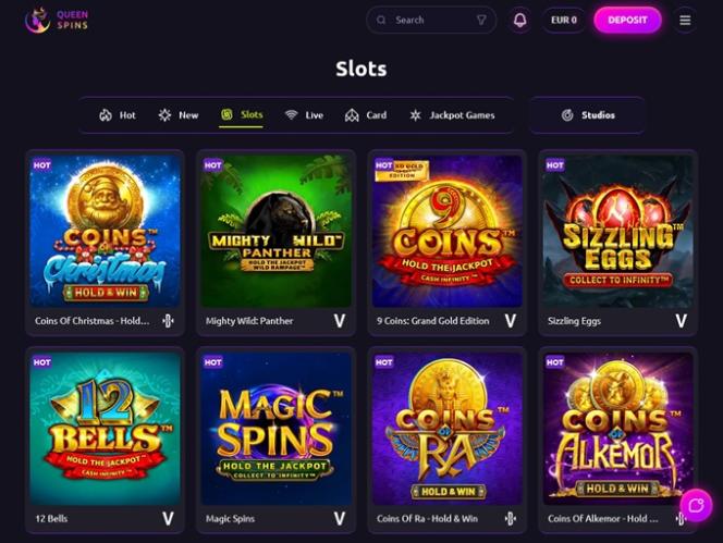 只要一眼望去,就能發現Queenspins賭場豐富的遊戲資源中匯集了眾多頂尖的供應商。 Queenspins賭場的合作夥伴包括ELK Studios、Betsoft、Quickspin、 Pragmatic Play 、Merkur Gaming等等。