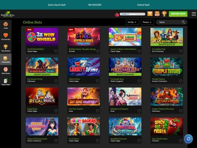 Raging Bull Casino 由 Real Time Gaming and Spinlogic Gaming提供支持,其遊戲庫包含超過 200 款遊戲,可供玩家暢玩。您可以透過可下載的用戶端軟體或網頁平台(允許使用網頁瀏覽器)暢玩該賭場。
