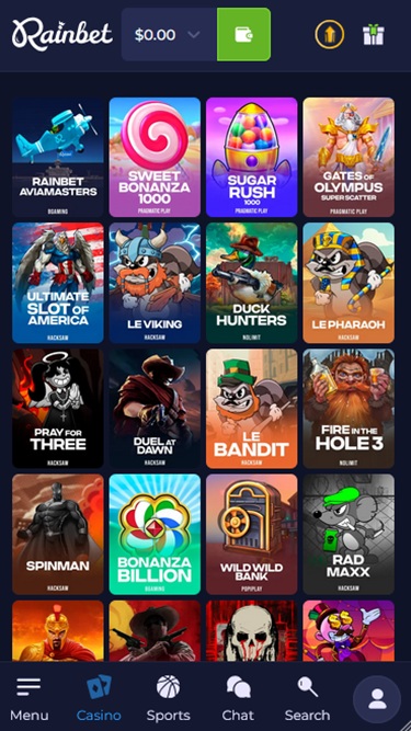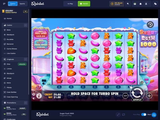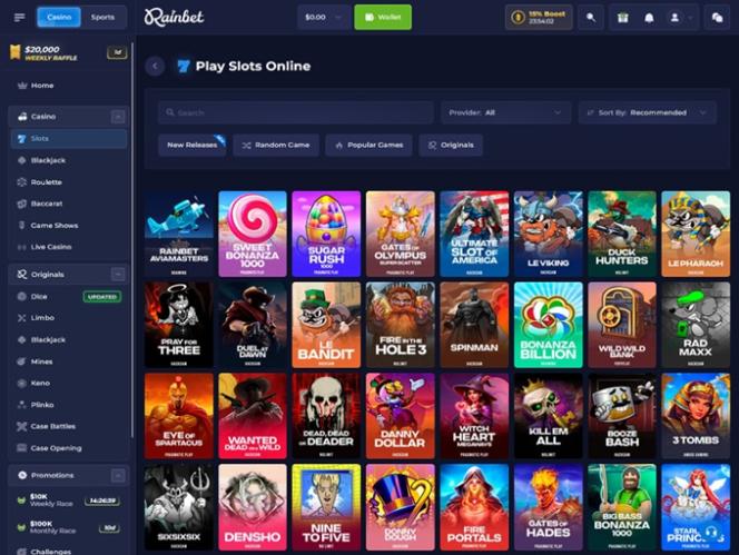 正如我們之前所說,Rainbet 提供豐富的賭場遊戲選擇,其中包括許多知名遊戲供應商的遊戲,例如 Pragmatic Play、 Relax Gaming 、Hacksaw Gaming、Play'n GO、 Red Tiger Gaming 、Spinomenal、Endorphina、 Onlyplay 、Booming Games 等等!