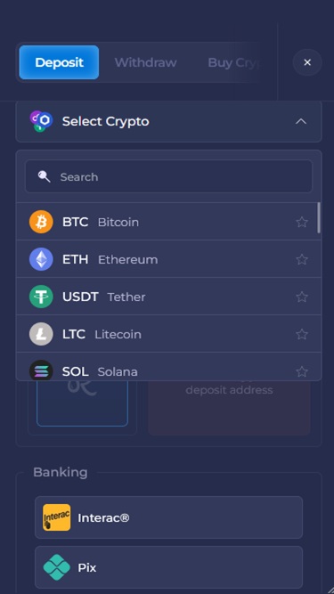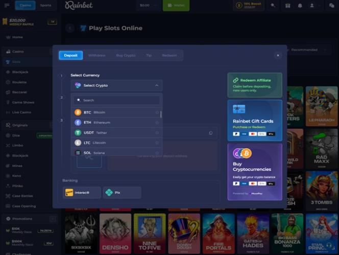 別擔心,儘管重點是加密貨幣,但 Rainbet 也提供非加密貨幣支付選項 - 例如 Interac 和Pix !