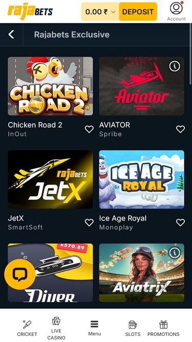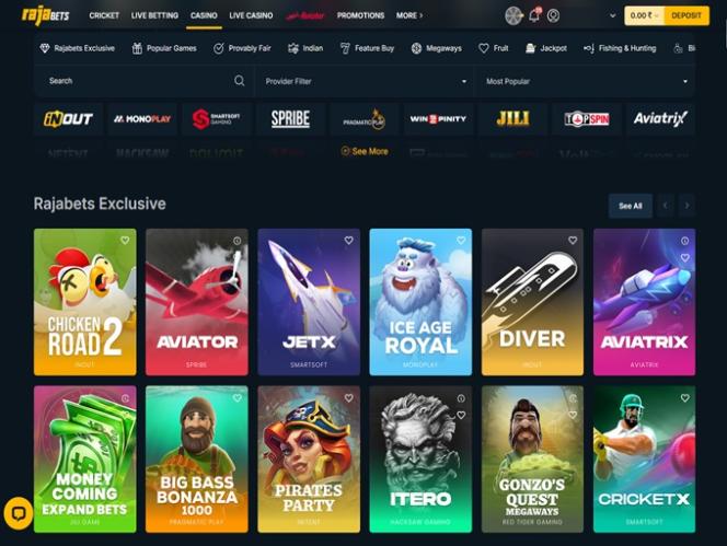 Rajabets 賭場的介面使用者友好,跨平台優化,可在所有可用裝置上進行遊戲。