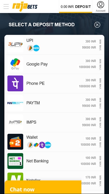 Banking銀⾏業務選項 的 Rajabets Casino