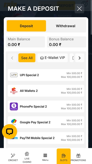 該博彩品牌接受加密貨幣。除了加密貨幣支付方式外,玩家還可以使用支付卡和許多流行的電子錢包選項,包括印度創建的RuPay 金融服務系統。