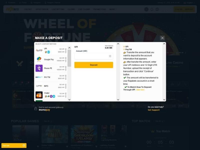 Rajabets 是一個線上賭場和體育博彩網站,由 Corpmove NV 擁有和經營,該公司根據庫拉索法律註冊成立,由庫拉索博彩管理局和庫拉索政府授權和監管。