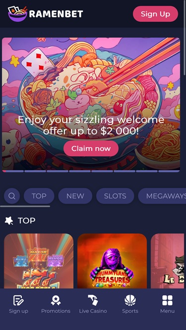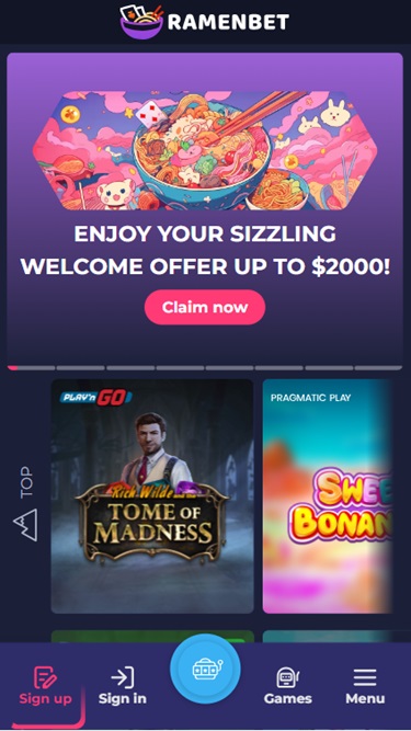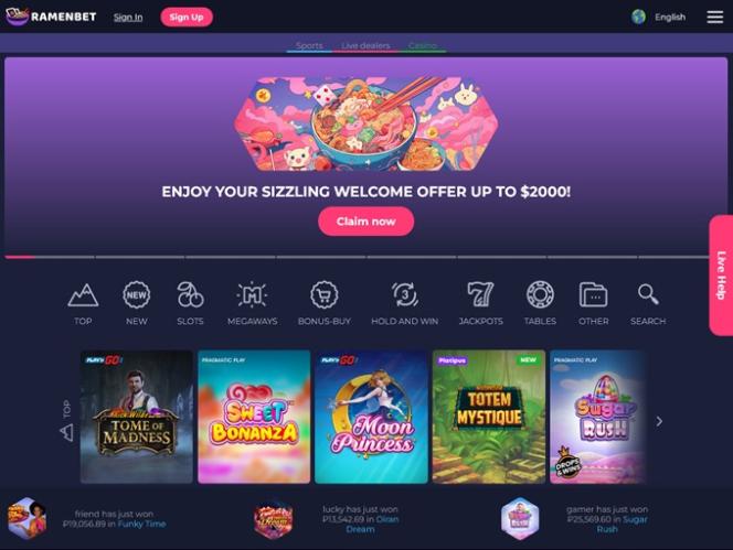 Ramenbet Casino 是一家體育博彩營運商和線上賭場,由一家根據庫拉索法律註冊成立的公司經營,並由 Antillephone NV 頒發執照和監管。賭場網站提供阿拉伯語、英語、印地語、日語、韓語、俄語和土耳其語等語言版本,主要目標受眾是來自日本、俄羅斯和白俄羅斯的玩家。我們也歡迎來自其他博彩管轄區的玩家。如果您是其中之一,敬請期待! Ramenbet 的外觀設計精美,給人留下了深刻的第一印象,讓我們一起來體驗吧!