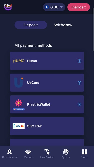 無論您喜歡使用傳統銀行業務選項,還是已完全轉向加密賭博,您都可以在這裡從大量可用選項中進行選擇,包括信用卡和借記卡支付卡、廣泛使用的電子錢包、直接銀行轉帳和眾多加密貨幣支付方式。