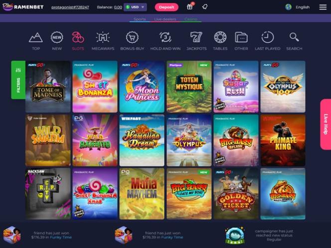 Ramenbet Casino 與眾多軟體工作室合作,從 iGaming 產業的資深領導者到新興的創新開發商,應有盡有。他們都為賭場的遊戲庫貢獻了高品質的遊戲,這些遊戲擁有激動人心的獎勵系統、卓越的音效、圖形解決方案等等。玩家可以探索Microgaming 、NetEnt、Novomatic、Quickspin、Play'n Go 等眾多值得信賴的頂級遊戲供應商的內容。