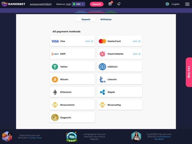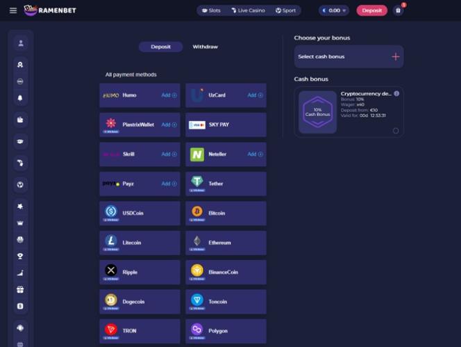 Banking銀⾏業務選項 的 Ramenbet Casino