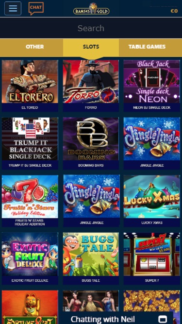 拉姆西斯黃金賭場 (Ramses Gold Casino) 提供多種老虎機遊戲,但其中很大一部分遊戲都是從合法開發商那裡盜版的。