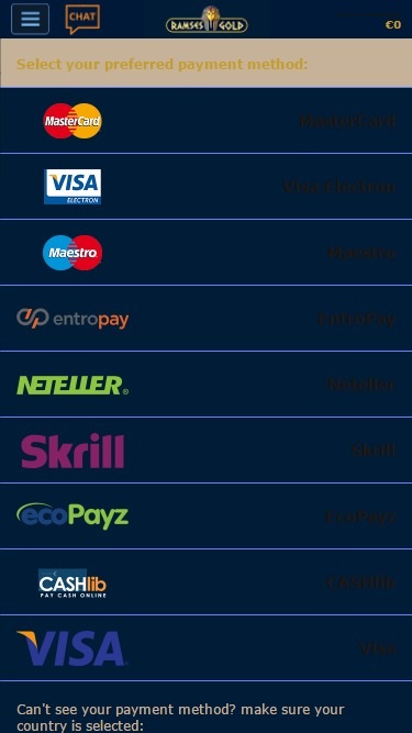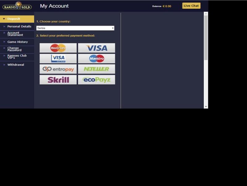 Ramses Gold Casino 的條款和條件還算不錯,但鑑於其行事作風,對其管理層的信任度應該不高。 Ramses Gold 的銀行系統相當完善,可透過 Maestro、Visa、ClickandBuy、Skrill、銀行電匯和 EntroPay 進行存款和提款。存款也可以透過 Giropay、Poli、西聯匯款、Paysafecard、Diners 和 SOFORT 進行。支付時間從電子錢包的 24 小時到銀行轉帳的 5 天不等,每月提款限額為 5,000 歐元。
