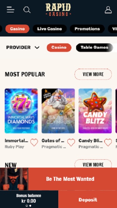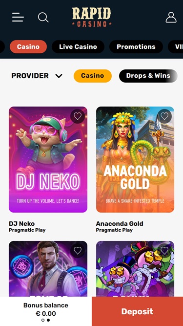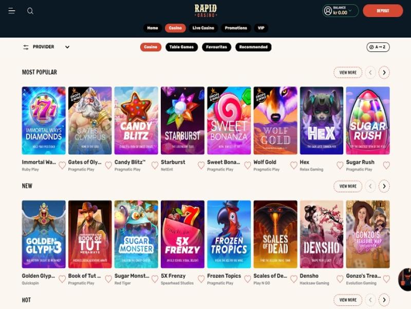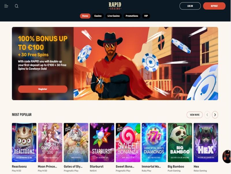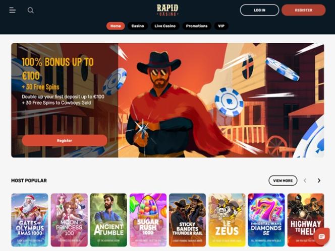 Rapid Casino 類似於“狂野西部”,但實際上這個賭場主要吸引位於芬蘭、挪威、奧地利、加拿大和紐西蘭的玩家。