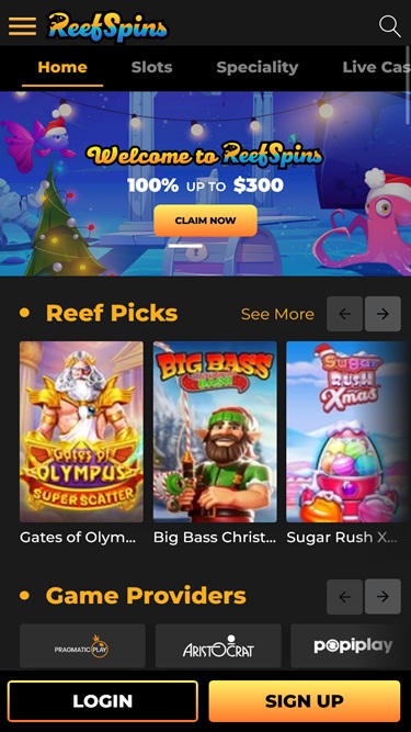 吸引玩家來到 ReefSpins 賭場的不僅僅是美觀的外觀。該品牌還提供種類繁多的賭場遊戲,包括線上老虎機、真人荷官遊戲和傳統的桌面遊戲。玩家可以期待看到豐富多彩、精彩的遊戲,體驗各種不同類型的線上賭博。