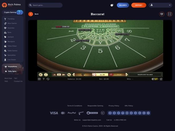 目前尚未發現玩家對 Rich Palms Casino 如何開展博彩業務存在任何問題。