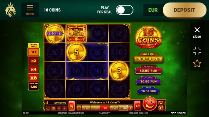玩家首先會注意到的是這個環境的精美外觀,以及所有元素的清晰直觀。說到平台的整體設計,我們無可挑剔。您將看到的主色調是綠色,金色的點綴更添美感。