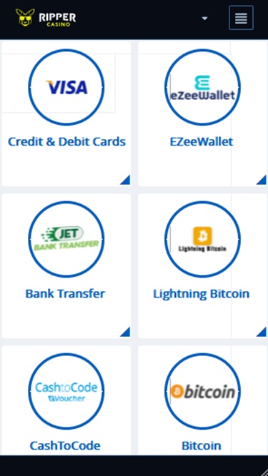 Banking銀⾏業務選項 的 Ripper Casino