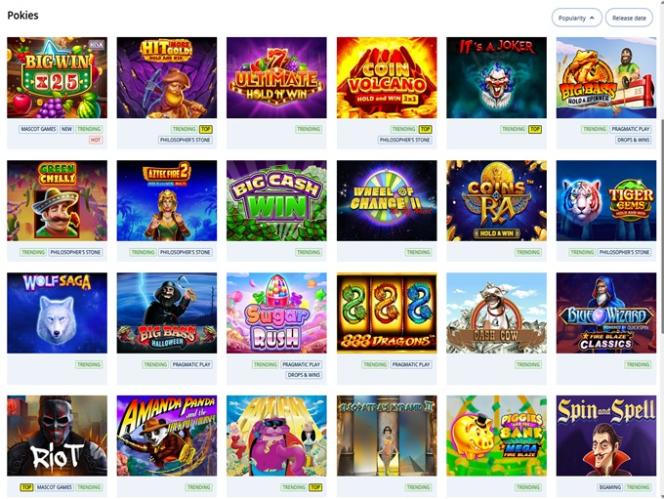 該線上品牌推出了一些由軟體供應商創建的頂級賭場老虎機和桌面遊戲,例如:Rival Gaming、 Booming Games和Arrows Edge 。