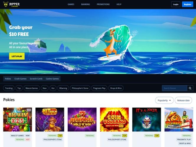Ripper Casino 擁有有趣的老虎機遊戲類別,有不少吸引人的遊戲可供選擇:Pot of Gold、Wild Bonus Re-Spins、Red Hot Volcano、Catsino、Wizarding Wins、Surfin' Reels、Cash Pig、Golden Profits、Lava Loca、Wild Ocean、Greek Legends、Asiatec 777、Bet 7 Classics、Wombaroo Hold and Re-Spin、Majestic Safari、Arabian Spins 等等。