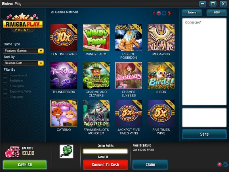 Riviera Play Casino 是一個線上博彩網站,於 2015 年開業,營運範圍不受庫拉索管轄。賭場提供一系列 Rival 和 Betsoft 遊戲,並提供優缺點的獎金條件,但其缺點是派彩速度較慢,而且如果贏到一定金額,則需要分期提現。