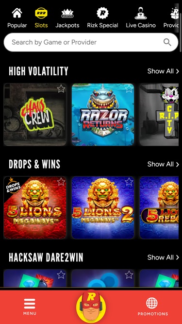 Rizk Casino 是一個線上博彩網站,由 MT SecureTrade Limited 於 2015 年創立。該賭場擁有強大的軟體系統,並提供即時電子錢包支付和快速的整體支付功能,使其成為一個理想的博彩場所。賭場資訊