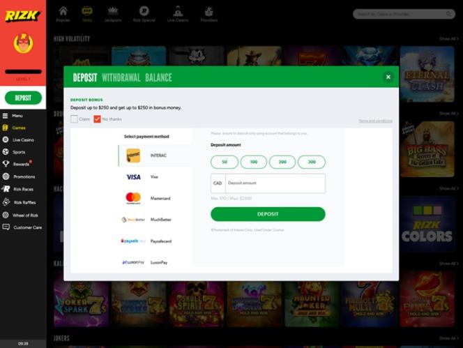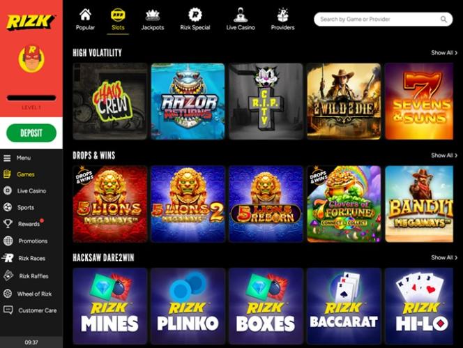 Rizk Casino 由 Microgaming, Net Entertainment, Playtech, 1x2gaming, Barcrest, Big Time Gaming, ELK Studios, Evolution Gaming, iSoftBet, lightningboxgames, Novomatic, Oryx, Play'n GO, Quickspin, Rabcat, Relax Gaming, Thunderkick, Yggdrasil, Endorphina, Wazdan, Booming Games, Stakelogic, Pragmatic Play, Nolimit City, Red Tiger Gaming, Spinomenal, Skillzzgaming, Fantasma Games, Kalamba, Triple Edge Studios, Northern Lights Gaming, Stormcraft Studios, Electric Elephant Games, Bulletproof Games, All41 Studios, Gluck Games, Gameburger Studios, Neon Valley Studios, Golden Rock Studios, Swintt, Shuffle Master, SpinPlay Games, Blue Guru Games, Games Global, 2by2 Gaming, Bally Technologies, bluberi, Blueprint Gaming, Greentube, Merkur Gaming, NextGen, NYX Interactive, Push Gaming, WMS, Inspired Gaming, Gaming Realms, Cayetano, SG Interactive, Gamomat, Red7Mobile, Scientific Games, Side City Studios, Reel Time Gaming, Iron Dog Studio, Old Skool Studios, Foxium, Just For The Win, PearFiction Studios, Wild Streak Gaming, Slingshot Studios, Fortune Factory Studios, STHLM Gaming, 4ThePlayer, Gamevy, Crazy Tooth Studio, ReelPlay, Alchemy Gaming, Black Pudding Games, Snowborn Games, Hacksaw Gaming, Max Win Gaming, Gold Coin Studios, Bang Bang Games, Half Pixel Studios, Slotmill, SilverBack Gaming, Peter And Sons, Eurostar Studios, Aurum Signature Studios, Lucksome Gaming, Area Vegas, Leap Gaming, Wishbone Games, Circular Arrow, Print Studios, HammerTime Games, Four Leaf Gaming, INO Games, Nailed It! Games and Atomic Slot Lab提供支持,其遊戲庫透過基於網路的平台以及透過智慧型手機和平板電腦提供遊戲的行動網站提供。Baccarat