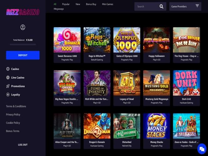 無論如何,玩家看重線上賭場不僅僅是因為它的外觀,更看重它提供的娛樂遊戲。幸運的是,Rizz Casino 在這方面並不遜色,該品牌成功累積了豐富多樣的博弈遊戲資源。