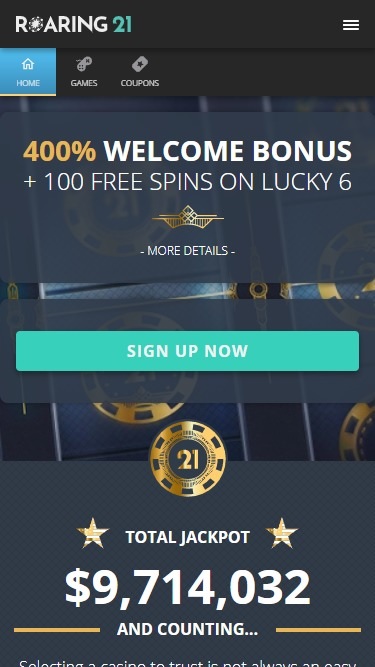 Roaring 21 是一個針對美國玩家的線上博彩網站,於 2018 年首次上線。網站使用 RTG 軟體,是實力雄厚的 Casino Max 的姊妹網站。我們曾與賭場的營運集團 Entertainment Software Group NV 合作,發現他們服務專業,而且支付獎金的速度也相對較快。 Casino Max 的高標準與 Roaring 21 不相上下,如果您正在尋找新的賭場,我們強烈推薦這個網站。