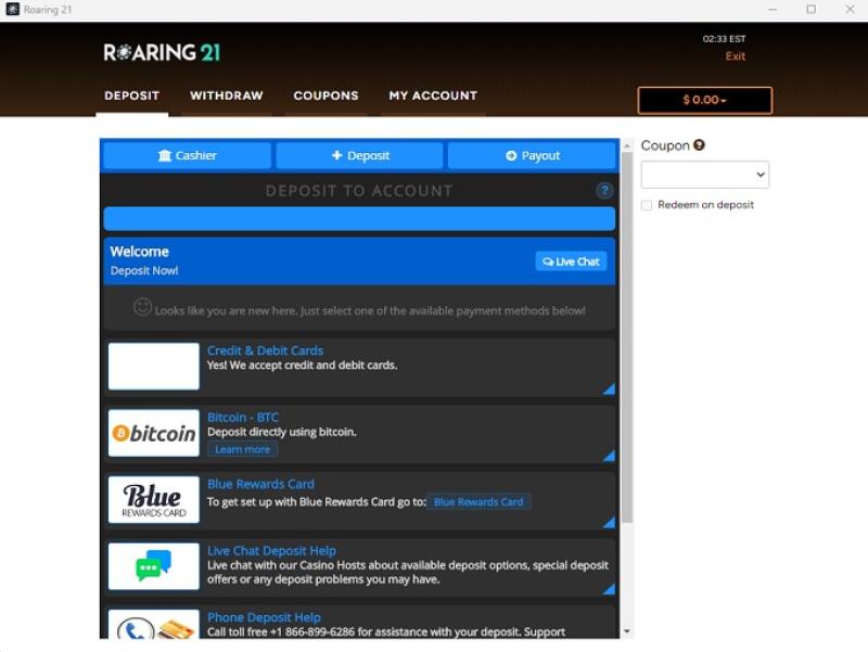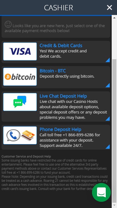 Roaring 21 的銀行系統對於一家對美國玩家友善的賭場來說非常完善。該網站接受信用卡、銀行電匯、電子錢包和比特幣的存款和提款。獎金到帳時間為 24 小時,但比特幣會在之後不久支付。其他方式由於資金處理方式不同,到帳時間會稍長。每週提款限額為 4,000 美元。