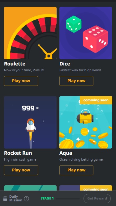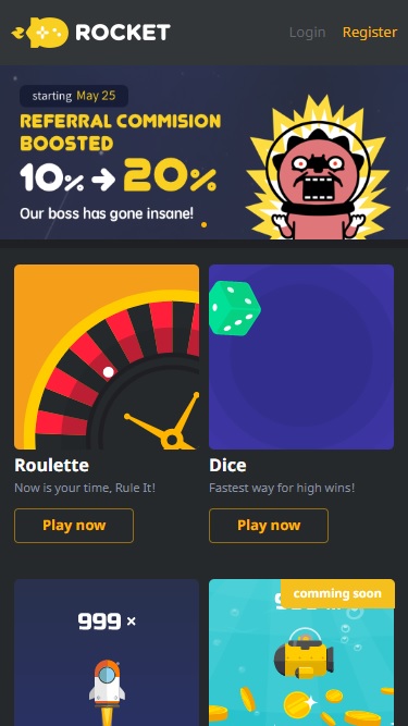 Rocket.run 使用其專有軟體為玩家提供遊戲。該網站介面美觀,易於瀏覽,尤其是在遊戲數量較少的情況下。您可以使用桌上型電腦或行動裝置存取網站,並且兩者的運作效果都一樣出色。負責任賭博, 客服⽀援 & 安全性