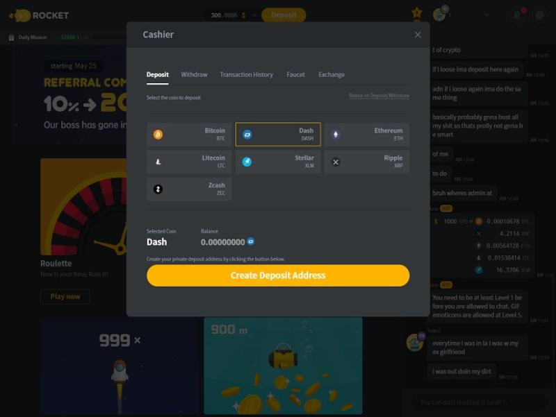 Rocket.run 的銀行業務完全使用加密貨幣進行,用戶可以使用 BTC、XRP、ETH、LTC 和 XLM 進行存款和提款。支付時間為即時到賬,我們目前沒有發現任何支付限制。