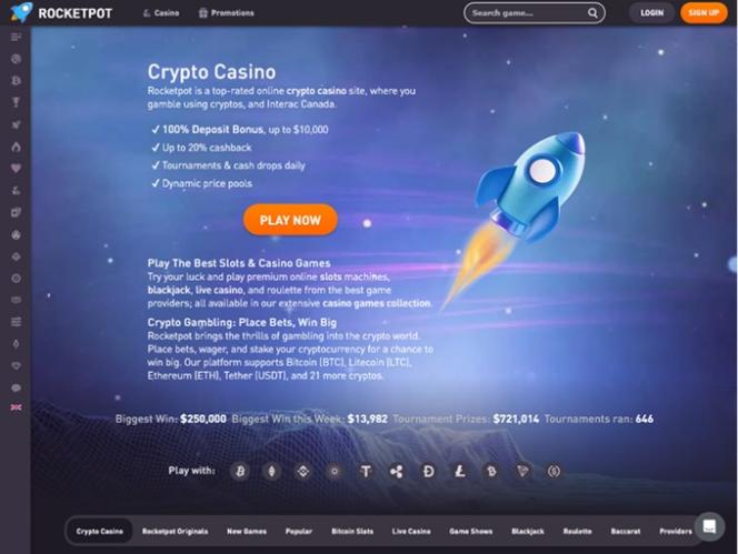 Rocketpot Casino 是一家信譽卓著、支援加密貨幣的線上賭場,致力於為所有會員提供最佳體驗!它擁有超過 3,000 款由全球領先軟體供應商提供支援的精彩遊戲,並提供各種獎勵和促銷活動,幫助您享受遊戲樂趣!