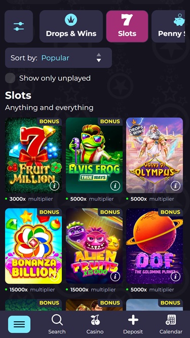 首先,線上老虎機 愛好者一定會在這裡盡情暢玩各種遊戲。遊戲庫囊括了最新發行的遊戲、經典遊戲、引人入勝的主題和獨特的遊戲機制。我們相信,即使是最資深的單臂強盜機愛好者也會喜歡這裡豐富的遊戲選擇。