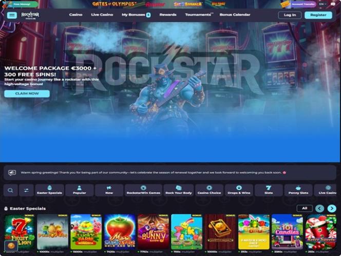 如果您喜歡線上賭場豐富的促銷和獎金,那麼 RockstarWin 賭場定會讓您愛不釋手。首先,如果您想建立帳戶,即可領取豐厚的迎新獎金,開啟您的首次遊戲之旅。