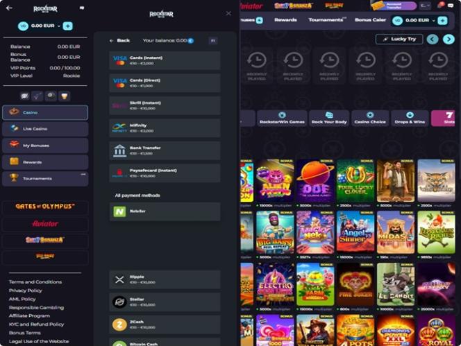 RockstarWin 賭場由庫拉索博彩管理局 (Curacao Gaming Authority) 授權並監管。該營運商的目標客戶是來自奧地利、加拿大、芬蘭、德國、愛爾蘭和紐西蘭的玩家,歡迎他們註冊並享受所有可用的娛樂選擇。