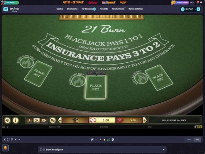 RockstarWin Casino Blackjack (Microgaming)展開