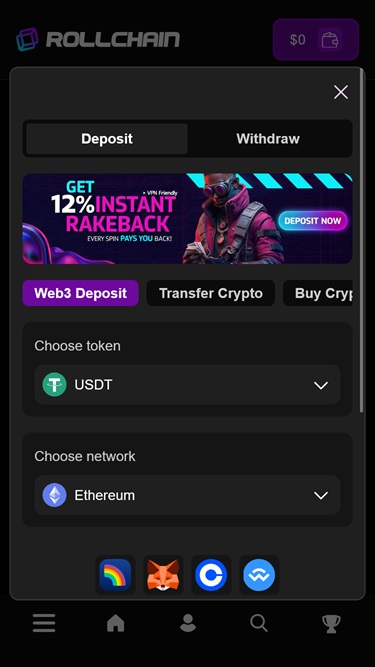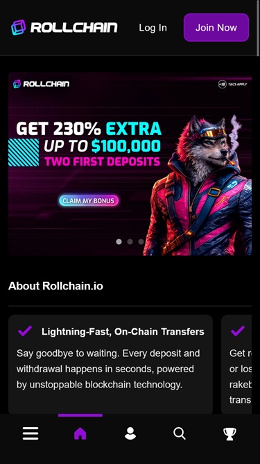 該運營商設計了一個平台,完美適應所有行動裝置和桌上型電腦。因此,無論玩家喜歡用智慧型手機或其他適合隨時隨地暢玩遊戲的設備,還是選擇個人電腦等大螢幕設備,都能獲得同樣出色的線上遊戲體驗。 Rollchain Casino 的網站反應迅速,如果您擁有穩定的網路連接,就能享受快速的遊戲載入速度和豐富的娛樂內容。
