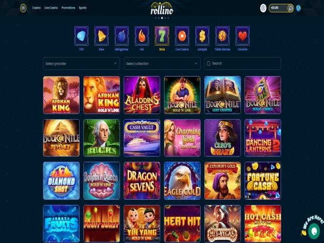 在 Rollino,玩家可以暢玩以下熱門遊戲:《尼羅河之書:Hold 'N' Link》、《尼羅河之書:失落篇章》、《尼羅河之書:魔法選擇》、《尼羅河之書:復仇》、《BUCKS》、《Cash Vaults: Hold 'N' Link》、《魅力四射》、《靈海》、《Cash》、Ncan' Link》、《Cleo's Heart》、《Dancing Lanterns 2》、《Diamond Shot》、《Dolphin Queen: Hold 'N' Link》、《Dragon Sevens》、《Eagle Gold》、《Explorer's Gold: Cash Blast》、《Forten Cash》、《Ft Fruds》、《Firm Holits》、《YYYYYalk’s》、《FortYes Cash》、《FtFruit》、《富樂Hit》、《Hit in Vegas》、《Hot Cash Hold 'N' Link》、《Inferno Fruits》、《Diamond Lock Bonus - Jackpot Sevens》、《Jungle 2》、《Just Gems: Hold 'N' Link》、《Lotus Fortune》、《Mriya》、《Just Gems: Hold 'N' Link》、《Lotus Fortune》、《Mriya》、《Osiris Gold:) 7's》、《Royal水果 20、皇家水果 40、皇家水果 5:Hold 'N' Link、草原小隊、太空岩石 2、魷魚老虎機、雷霆一擊、野牛、野牛:Hold 'N' Link、四王之戰、寶石與石、阿拉丁的寶箱、蒙古寶藏、神廟貓、溫蒂妮的深淵、煙囪清掃工、國王、烏拉爾圖、吸血鬼、酋長國、藝伎、新鮮水果、更多新鮮水果、閃亮新鮮、超新鮮、角斗士、足球、野水果、秘密旅行、復古狂熱、更新鮮壽司、馬力士卡、馬卡、20616202086162089898988B啓汁、20661202016982098988氣壽司角鬥士、電臀舞、巫毒、春街、鑽石蒸氣、Slotomoji、2027 ISS、爵士樂、7 BONUS UP!戰爭女神 - 杜爾迦、小熊貓、禁忌、部落、足球巨星、幸運之地、堪察加半島、亡靈節、幸運連勝骰子 1、古蜜袋鼯、幸運連勝 2 13 生活、快勝、特洛伊 1骰子、幸運連勝 3 骰子、巫毒骰子、全能斯巴達、蜜袋鼯骰子、埃爾多拉多之謎、聖誕老人之書、現金坦克、2020 熱門老虎機、Aus Dem Tal、巨魔天堂、風城…