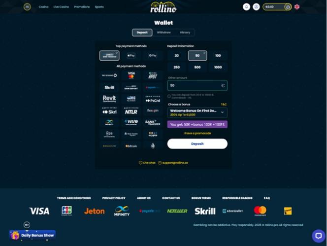 Rollino Casino 為那些喜歡透過特別促銷來提升遊戲體驗的賭場會員提供了有趣的優惠。