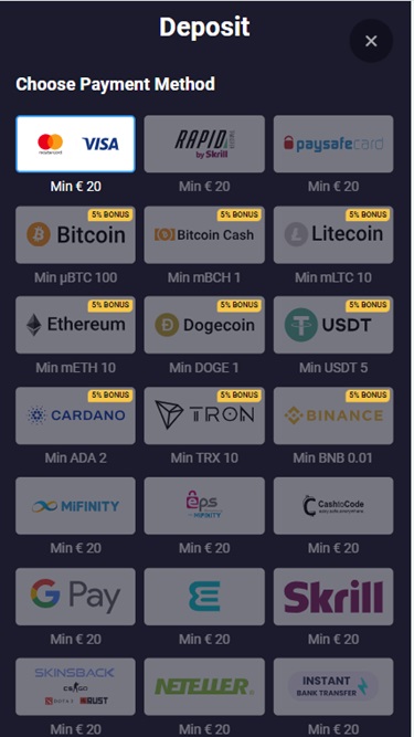 您可以使用德語、挪威語、法語和義大利語瀏覽整個平台。對於行動遊戲玩家,該品牌針對 iOS 和 Android 裝置優化了所有遊戲和網站版塊。您無需擔心下載特定應用程式即可使用所有內容;所有功能都可透過行動瀏覽器運行。