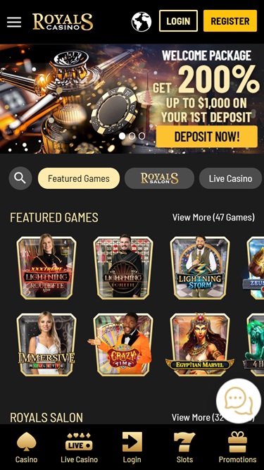 如果您使用智慧型手機造訪這家賭場,我們相信您會注意到,網站的佈局經過精心優化,以適應較小的螢幕。這裡的一切都是為了提升行動裝置的易用性而建構的。不過,請記住,桌面版同樣注重細節,RoyalsCasino 致力於為所有人提供流暢、愉悅的體驗。