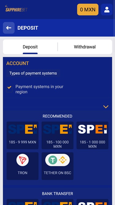 Banking銀⾏業務選項 的 Sapphirebet Casino