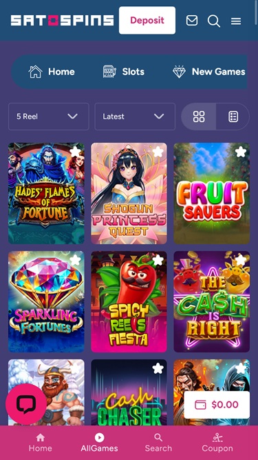 說到SatoSpins,情況就有些不同了。這家賭場只與Real Time Gaming和Spinlogic Gaming合作。儘管如此,該運營商仍然成功地提供了一個引人入勝的遊戲庫,其中包含各種遊戲類型和選項,包括速成遊戲、桌面遊戲、視頻撲克、特色遊戲和累積獎金遊戲。