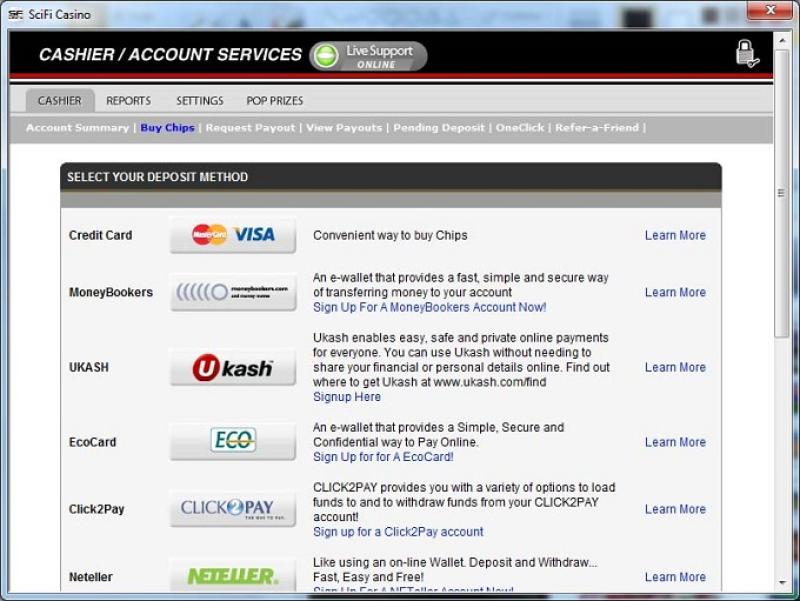 SciFi 賭場由 Playsafe提供支持,這是一款由賭場所有者開發的專有投注軟體。該軟體可透過下載獲取,但似乎沒有即時遊戲平台,這使得該網站落後於絕大多數網站,因為大多數網站都提供某種即時遊戲模式。Banking銀⾏業務選項 的 SciFi Casino