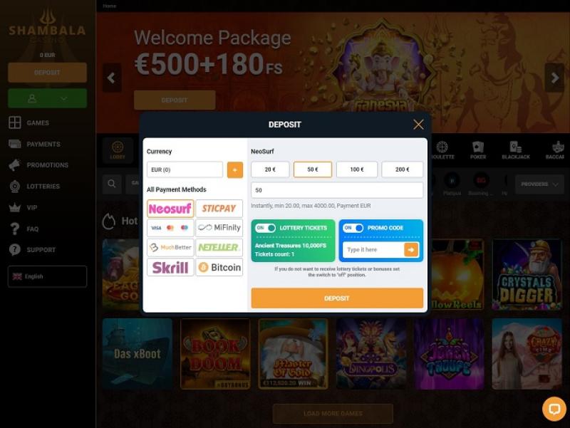只需查看其遊戲庫中的遊戲選擇,就能輕鬆識別真正關心玩家的賭場。賭場軟體供應商的清單充分體現了營運商為滿足玩家的博彩需求所付出的努力。 Shambala 由SoftSwiss支持,其合作夥伴還包括:NetEnt、Playtech、Spinomenal、Evolution 等。