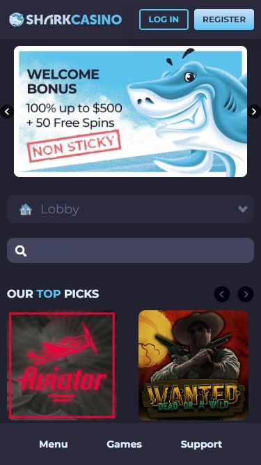 這款賭場平台採用深藍色海洋配色,對於Shark這個品牌來說,這絕對是合乎邏輯的選擇。這個引人入勝、設計精良、功能齊全的網站響應迅速,並針對所有設備(包括桌面和行動裝置)進行了優化,而且它擁有我們夢寐以求的遊戲——佔據了最顯眼的位置!
